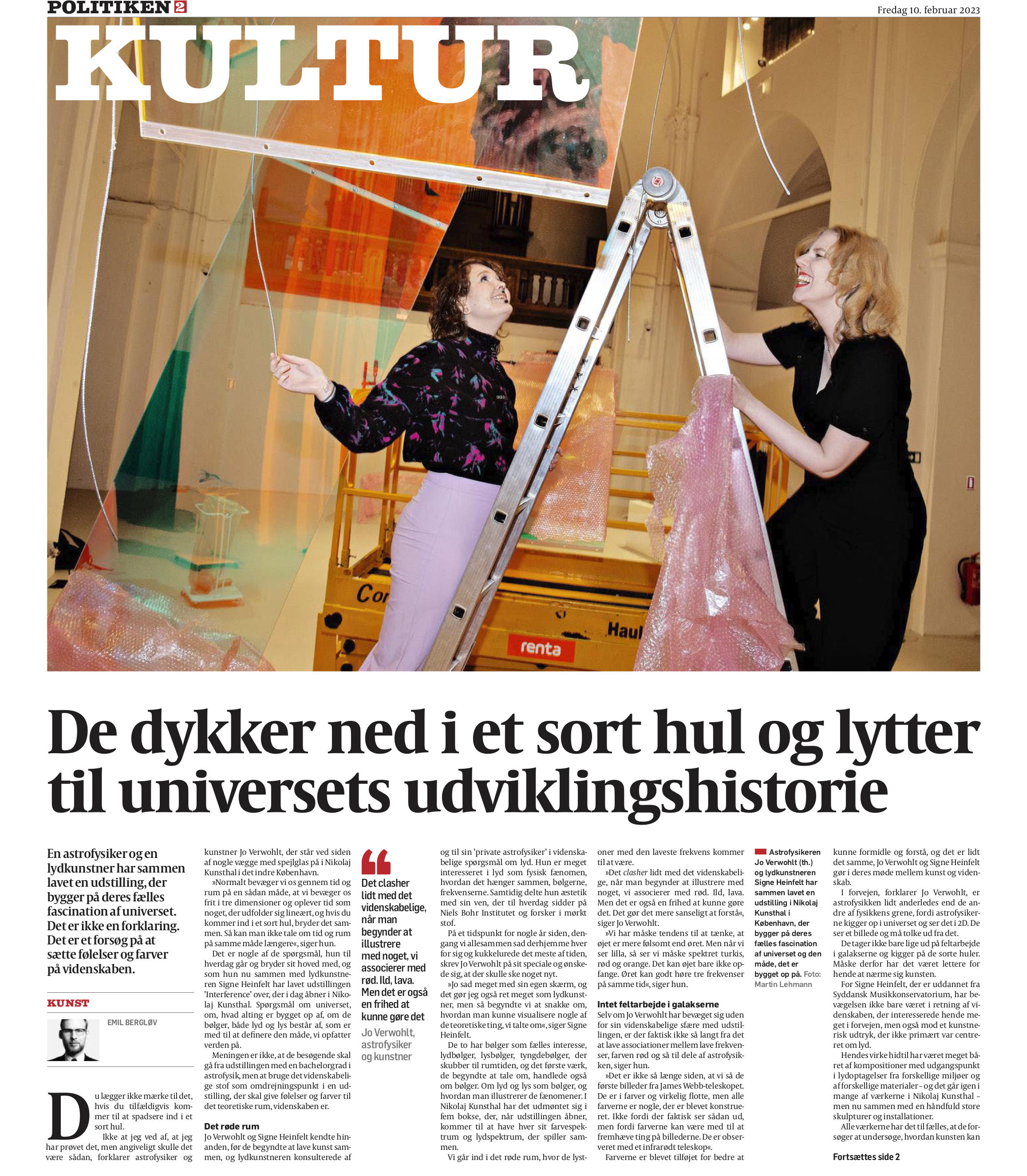 “Atomer, lyd, lysbølge og sorte huller ude i det store verdensrum kan være svære at forstå, men derfor kan astrofysik godt omsættes til kunst. Det sker på en ny udstilling, Interference, hvor en kunstner og en astrofysiker har arbejdet sammen.”